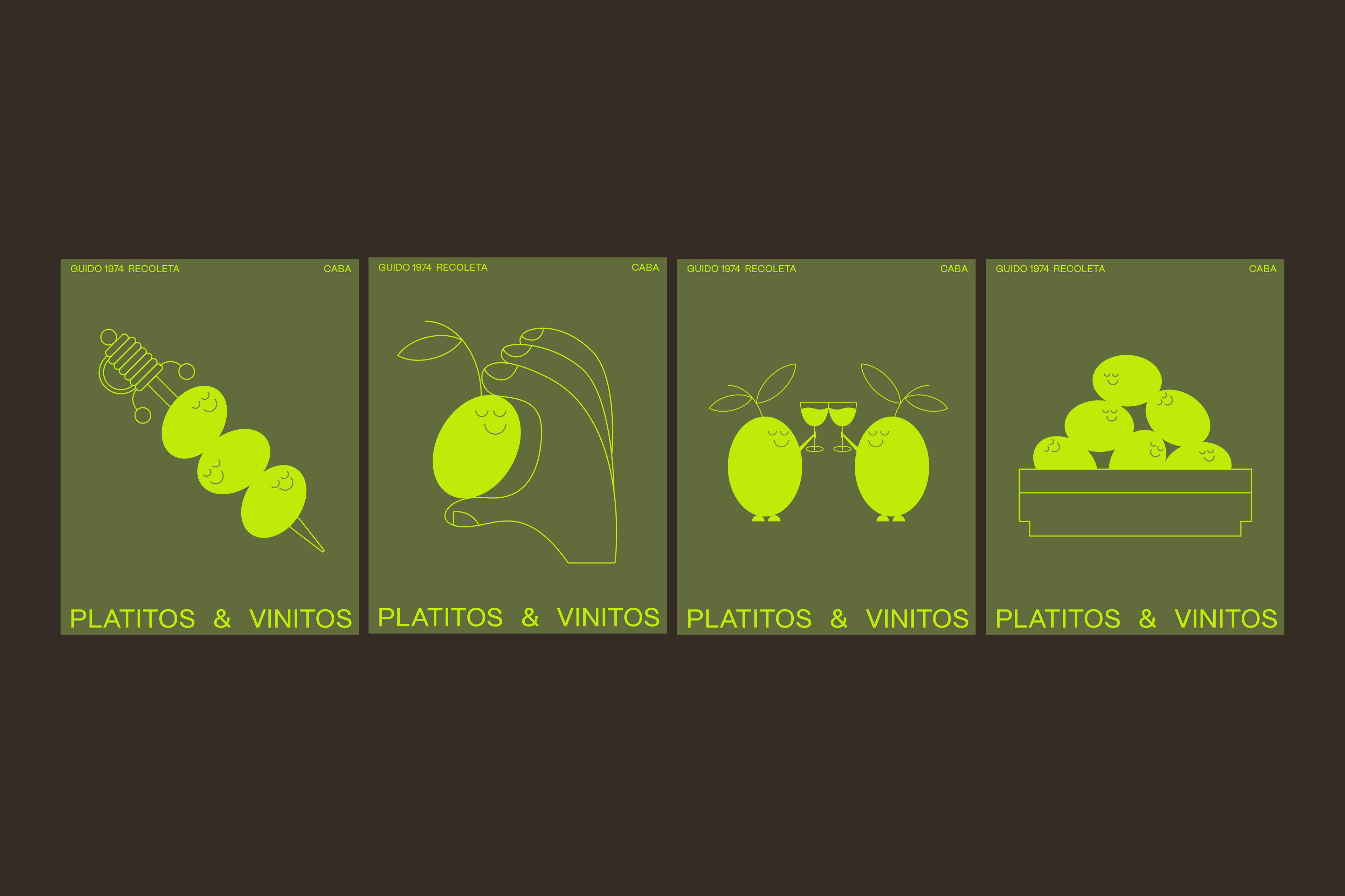 Un rincón de tapas y vinos en Recoleta, donde buscamos desarrollar una identidad visual amigable y descontracturada. Para esto, decidimos crear una tipografía inspirada en la forma de las aceitunas.