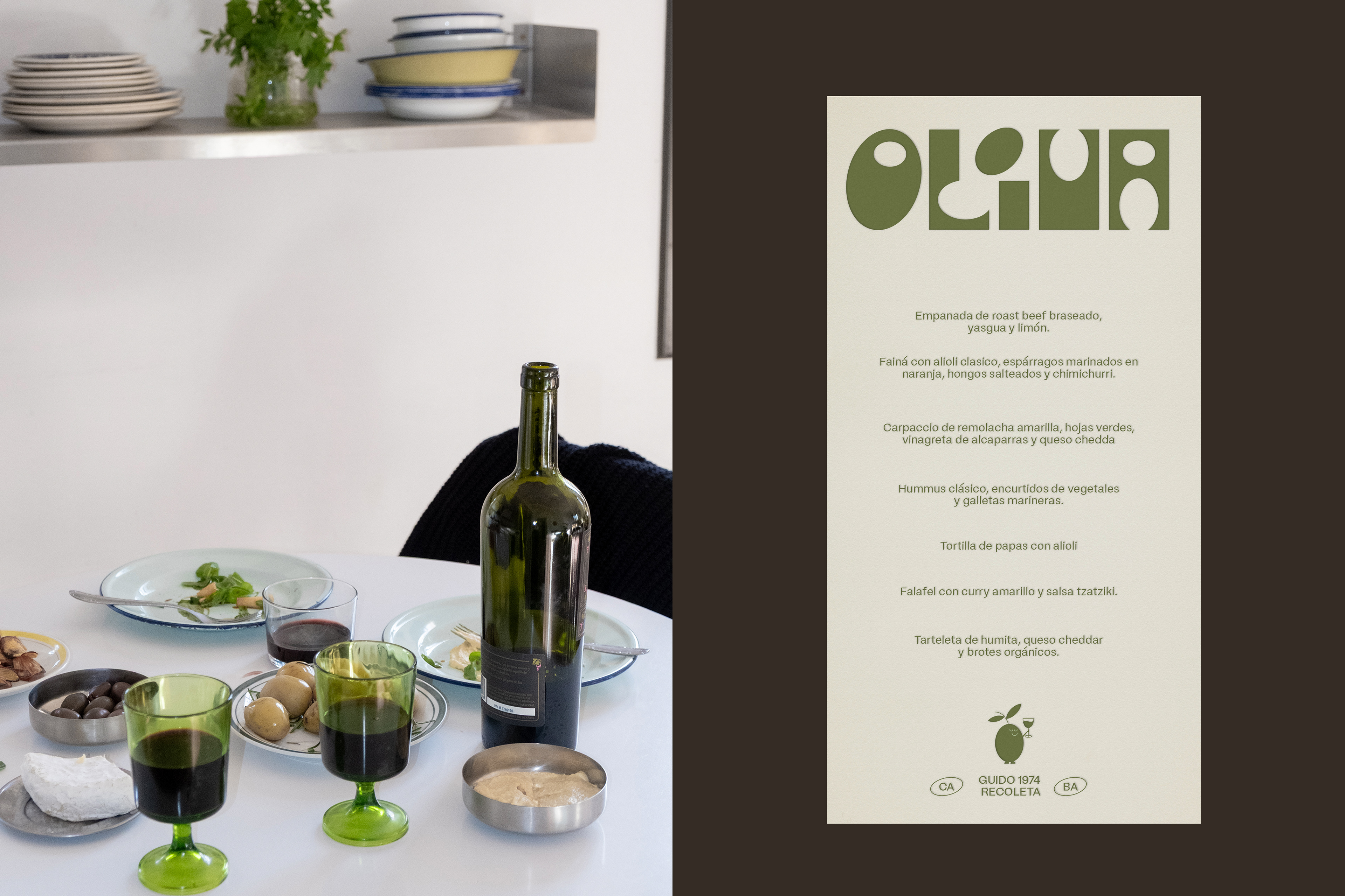 A friendly identity suite for Oliva, a tapas and wine corner in Recoleta, Buenos Aires.