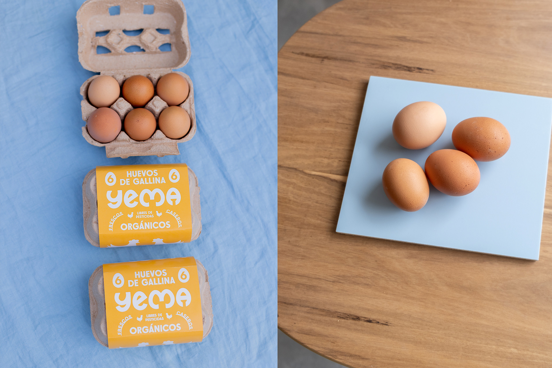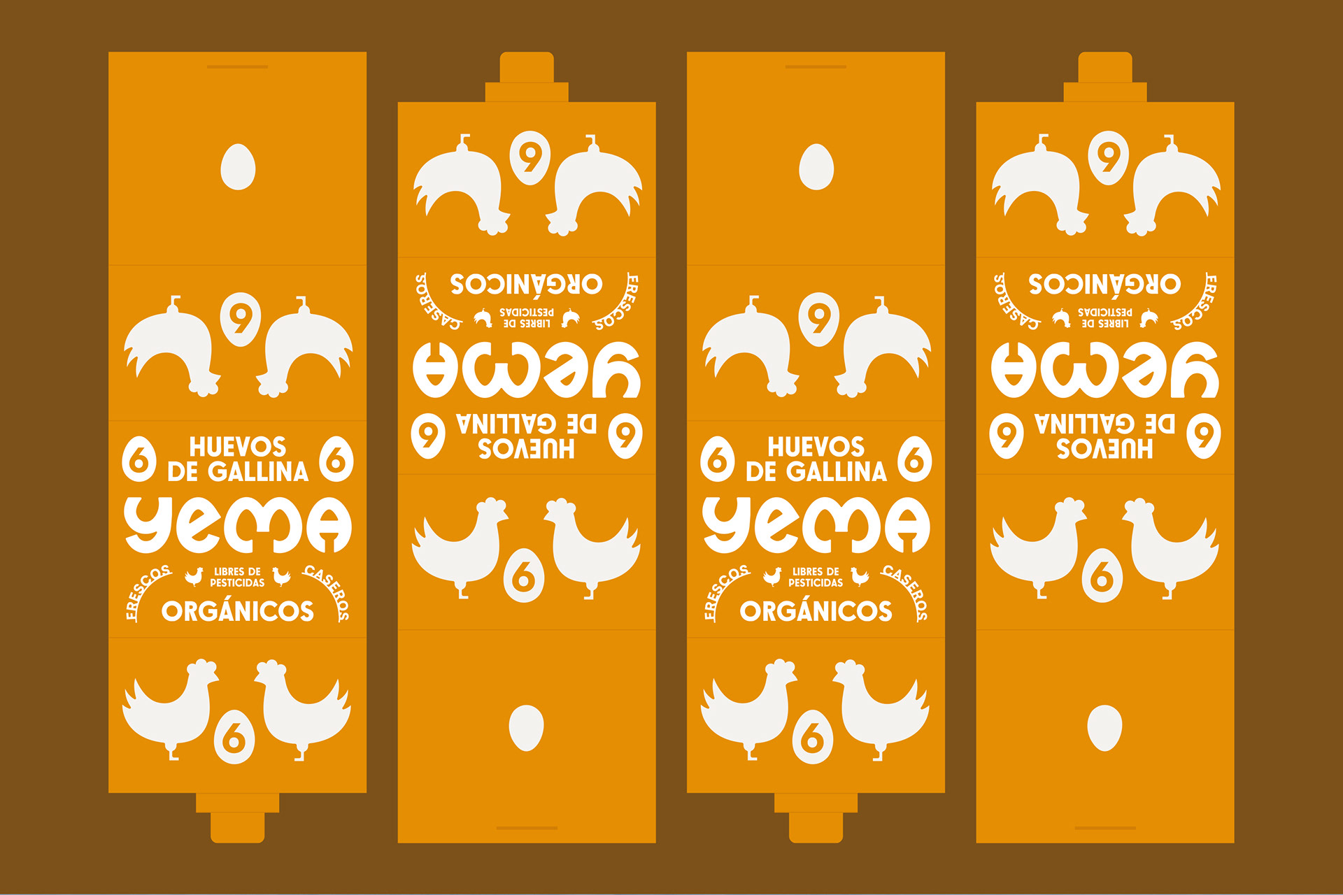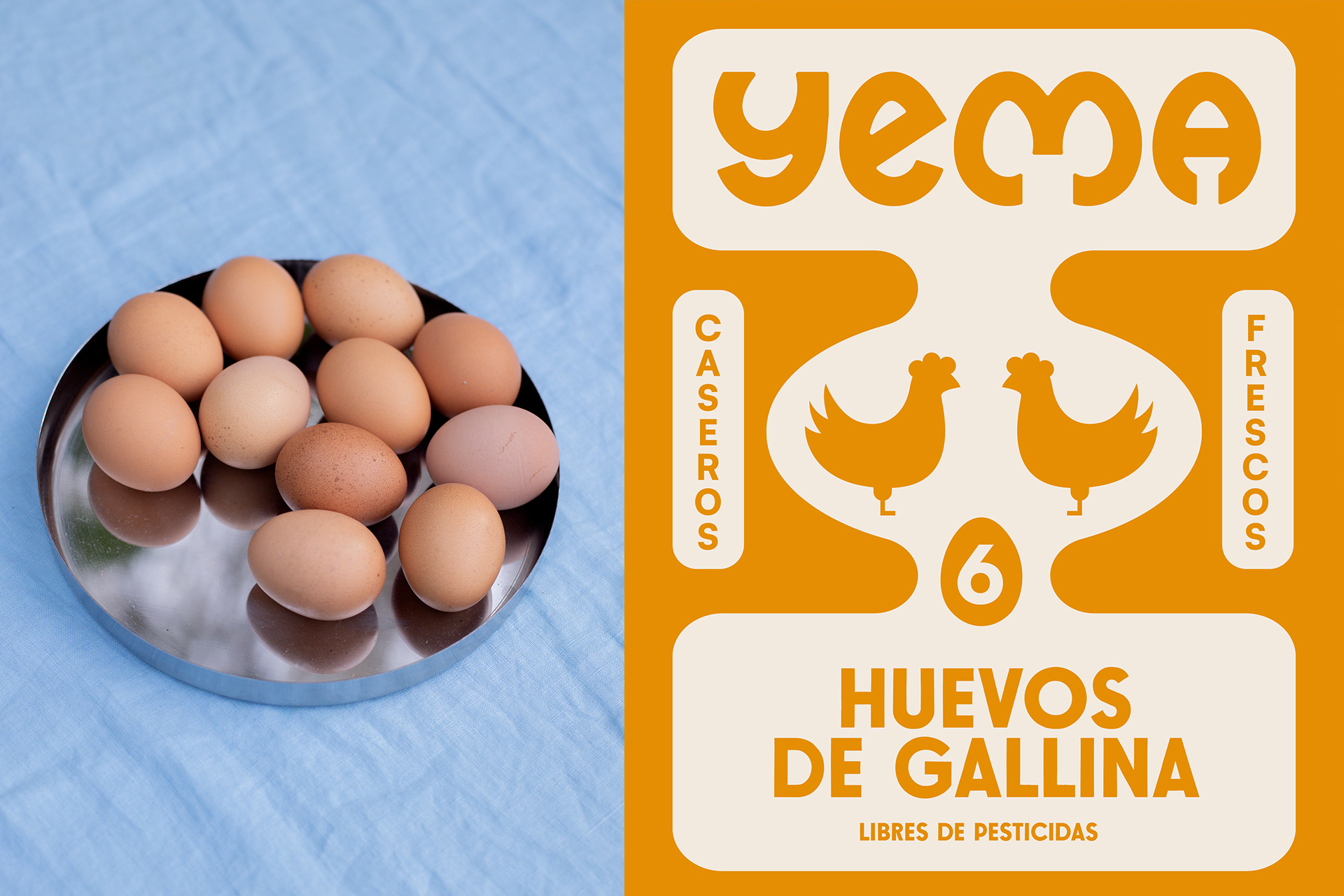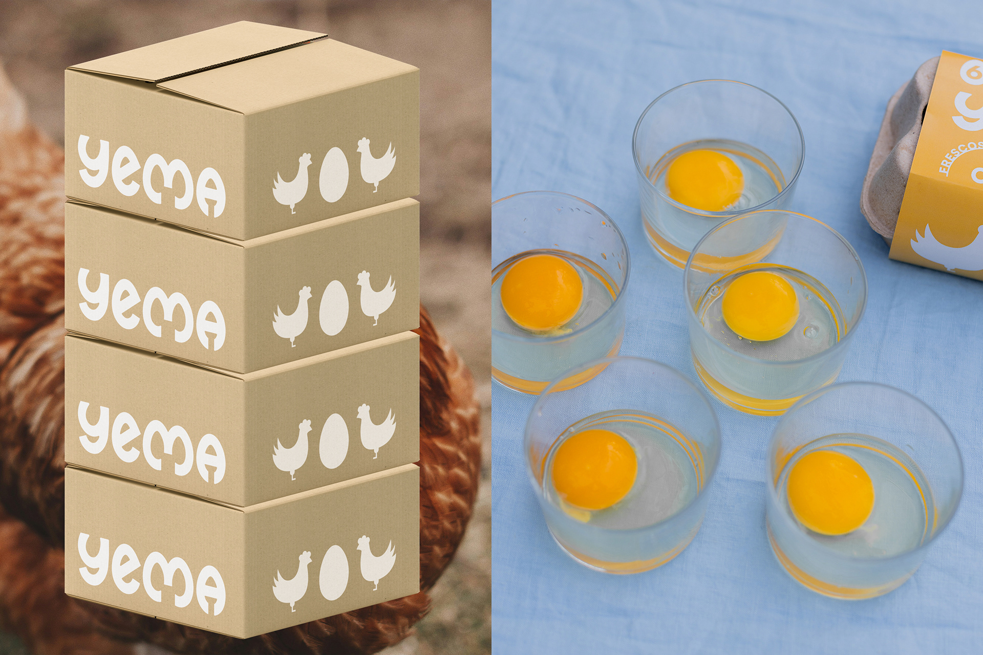 Diseñamos la identidad y el packaging de Yema, una empresa familiar que produce huevos de gallinas libres de jaula, priorizando su sanidad, respetando los hábitos naturales de consumo, libertad de movimiento y comportamiento natural de la especie.
